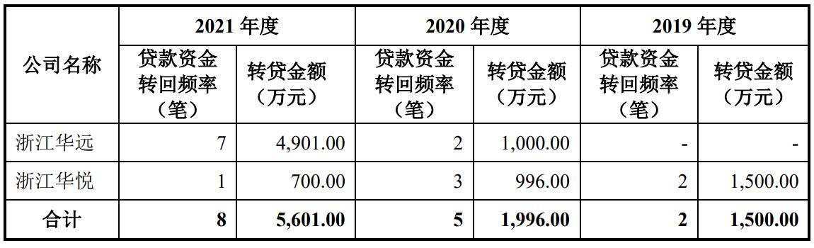 2019年、2020年和2021年,浙江华远分别转贷1500万元、1996万元和5601万元。浙江华远方面称,为满足贷款银行对受托支付的要求,发行人及部分控股子公司通过母子公司和供应商转贷集中取得流动资金贷款后,根据实际经营需求分批逐步使用。