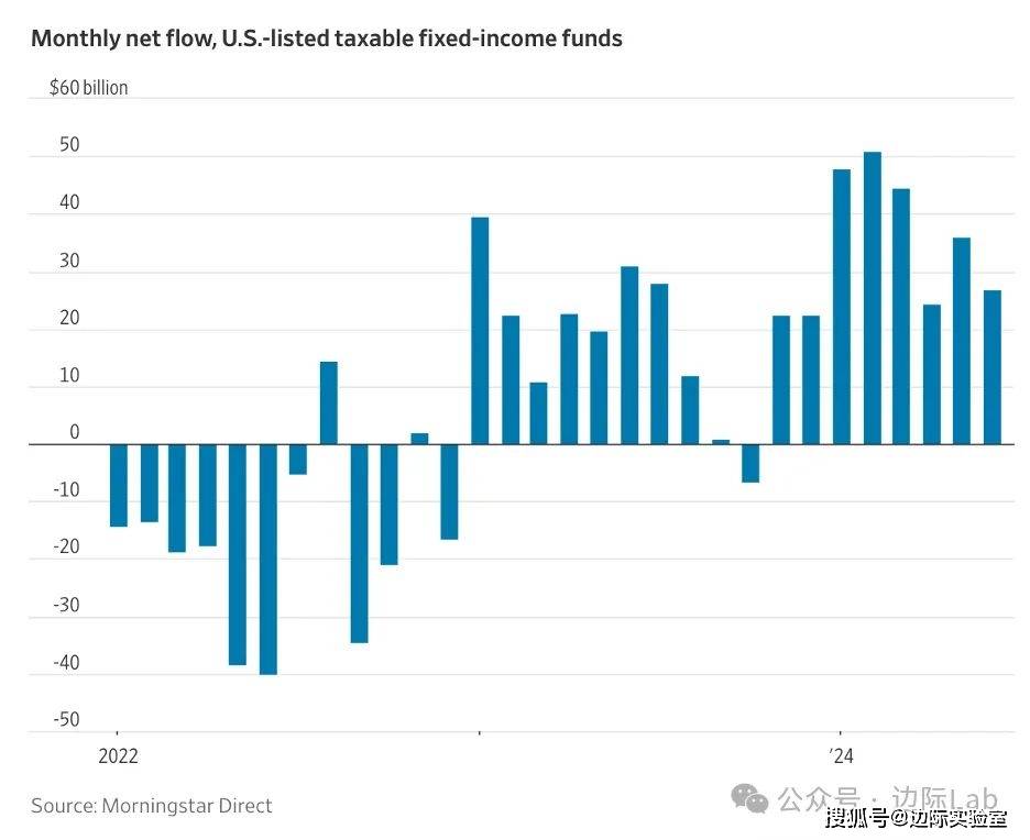 7.根据晨星公司的数据,今年以来,美国上市的固定收益交易所交易基金(ETF)已吸纳近1500亿美元的资金净流入。如果将共同基金考虑在内,债券基金占到年初以来美国基金资金净流入的近90%。