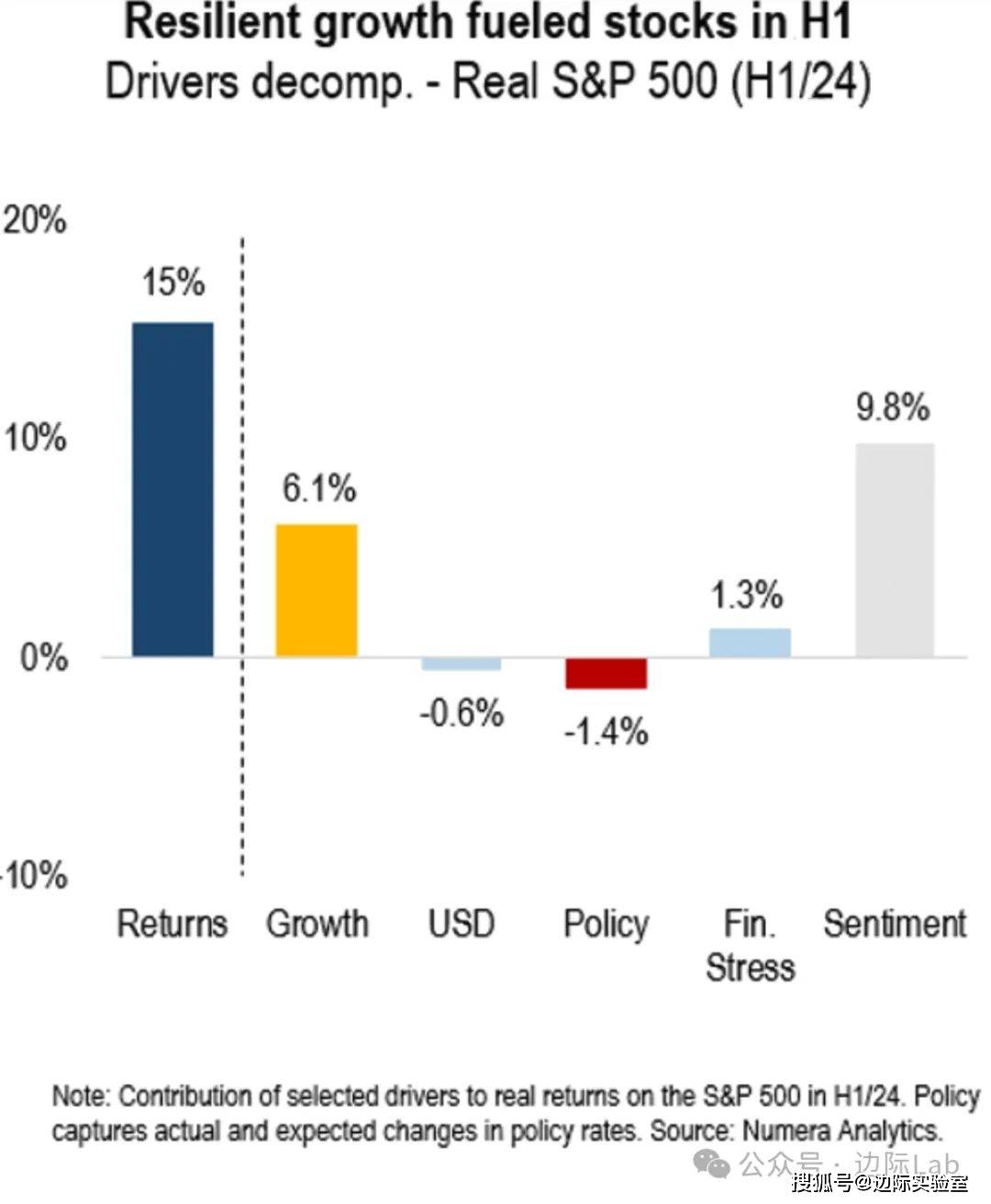 1.根据Numera Analytics的归因分析,2024年上半年标普500指数的上涨主要由经济增长(6.1%)和市场情绪(9.8%)推动。