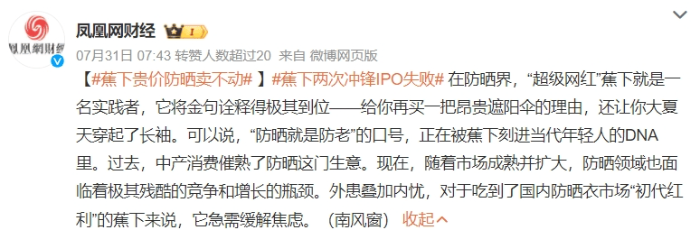 然而,依附“线上走红”的蕉下产品,也受到消费者的质疑。