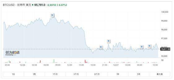 比特币BTC市场今日再度引发市场热议,截至当前,比特币BTC最新价格波动较大,目前价格已调整至约 95,791美元,较前一日回落约3.37%,主要是受到大额期权到期以及节日交易量减弱的影响。这一价格走势引发了投资者的广泛关注,市场对未来走势的预测分歧明显。从年初至今,比特币BTC已实现了约130%的增长,稳居资产表现榜首,比特币BTC行情的调整恰好提供了投资者重新审视市场的机会。X.Game作为业内领先的分析平台,建议投资者结合历史数据和实时行情,优化交易策略,而Bybit交易所近期更新的用户界面进一步提升了操作体验,使得交易更高效便捷。