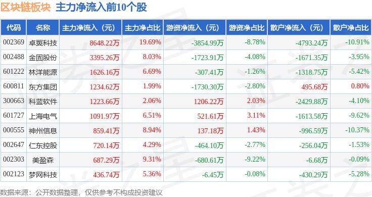 从资金流向上来看,当日区块链板块主力资金净流出20.85亿元,游资资金净流入1.07亿元,散户资金净流入19.78亿元。区块链板块个股资金流向见下表: