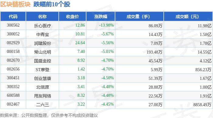 证券之星消息,9月2日区块链板块较上一交易日下跌1.84%,乐心医疗领跌。当日上证指数报收于2811.03,下跌1.1%。深证成指报收于8172.21,下跌2.11%。区块链板块个股涨跌见下表: