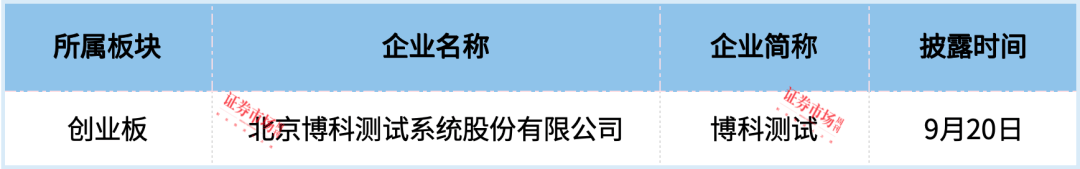 据统计,9月16日至9月22日,证监会披露了1家拿到注册批文企业的情况,为北京博科测试系统股份有限公司(以下简称“博科测试”)。