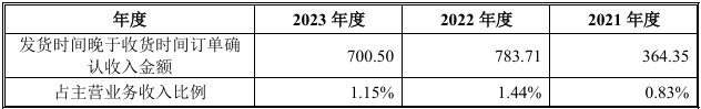 报告期内,公司发货时间晚于收货时间订单的具体情况如下: