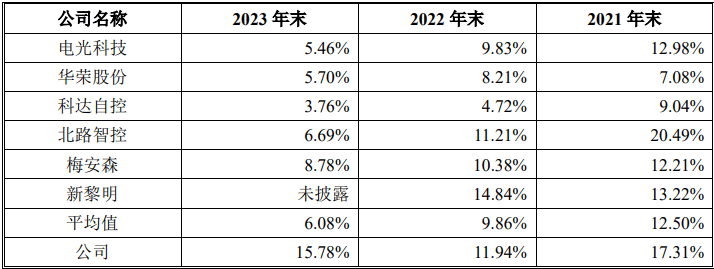 根据首轮问询函披露,2021-2023年,公司应收账款账面余额分别为41,401.21万元、52,336.91万元和53,804.32万元,占同期营业收入的比例分别为94.41%、95.85%和87.95%,应收账款余额占营业收入的比例接近九成。