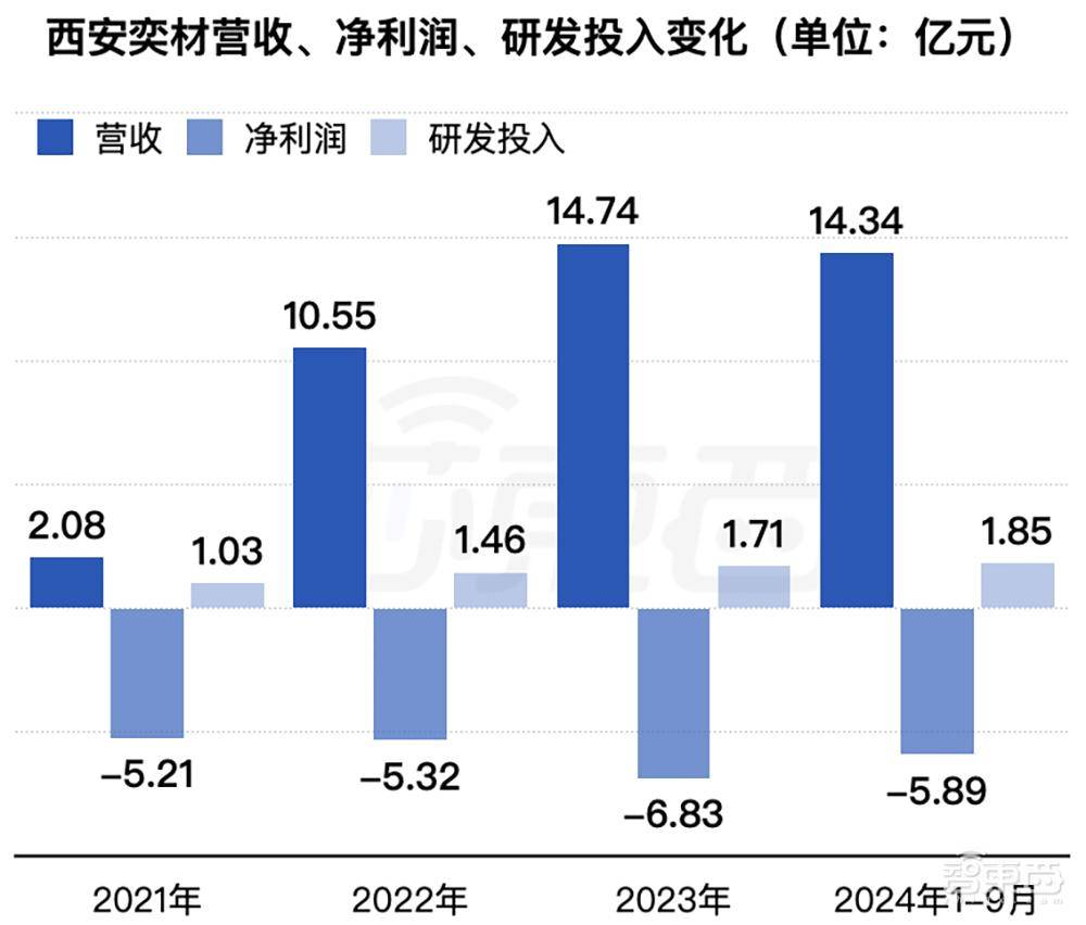 2021年、2022年、2023年、2024年1-9月,西安奕材累计营收逾41亿元,累计净亏损超过23亿元,累计研发投入为6.0亿元。截至2024年9月末,该公司合并报表及母公司未分配利润分别为-17.79亿元和-4.68亿元,存在未弥补亏损。