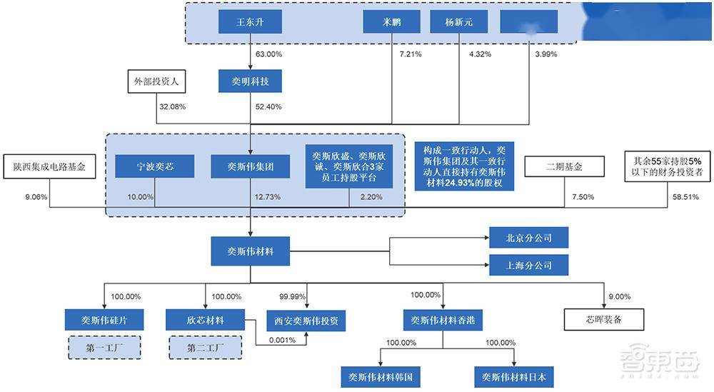 截至招股书签署日,王东升、米鹏、杨新元、刘还平四人直接和间接控制发行人控股股东奕斯伟集团合计67.92%的股权。