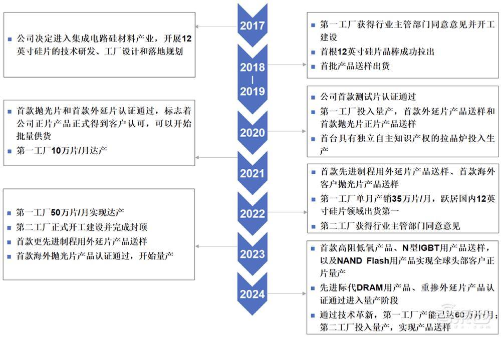 其长期愿景是“成为半导体硅材料领域受人尊敬的伟大企业”,现已形成拉晶、成型、抛光、清洗、外延五大工艺环节的核心技术体系。
