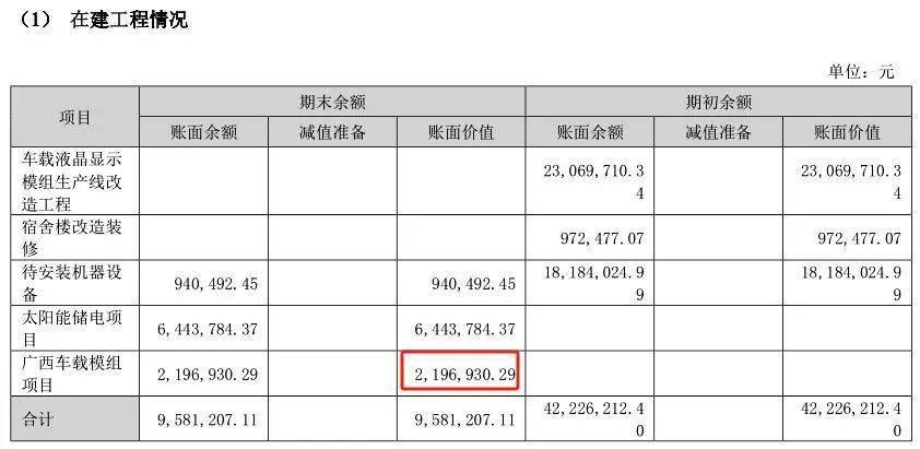 2022年7月,骏成科技使用募集资金5,000.00万元设立了广西骏成科技有限公司(下称:广西骏成),作为车载液晶显示模组生产项目新增的实施主体。原先车载液晶显示模组生产项目在实施地江苏省句容市拟投入募集资金35,000.00万元,变更为实施地江苏省句容市拟投入募集资金18,000.00万元、实施地广西省崇左市拟投入募集资金17,000.00万元。截止2023年年底,骏成科技已在广西省崇左市购置了土地并进行前期开发建设,年报中通过在建工程——广西车载模组项目归集。