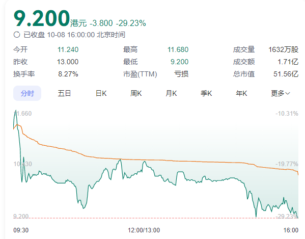 太美医疗是十一过后首家上市的港股企业,不过,遭遇了港股当日大盘不佳,开盘价为11.24港元,收盘价为9.2港元,以收盘价计算,其市值约51.56亿港元。
