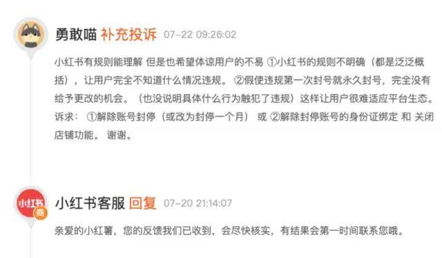 “很喜欢小红书这个平台,也很珍惜自己的原创,被恶意举报封号后却申诉无门,连内容都无法下载复制出来,最后只好放弃这个平台了。”前述被封掉身份证、ip、手机号的用户无奈吐槽。
