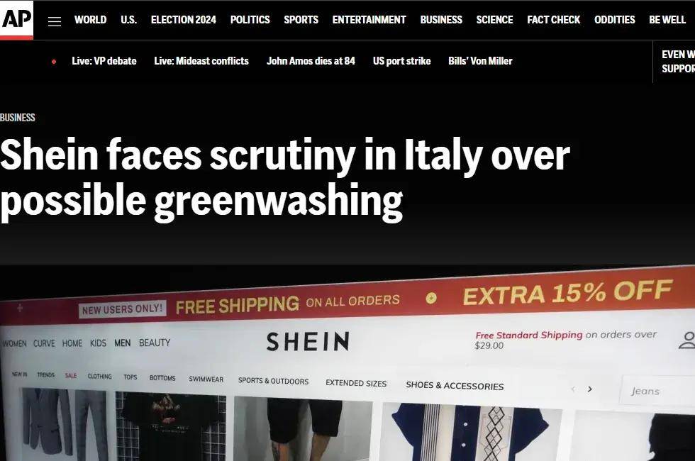 据美国联合通讯社(AP)9月底报道,意大利反垄断监管机构(意语缩写 AGCM)正调查SHEIN涉嫌“漂绿”,原因是其在可持续发展行动方面做出误导性宣传(即环保虚假宣传)。