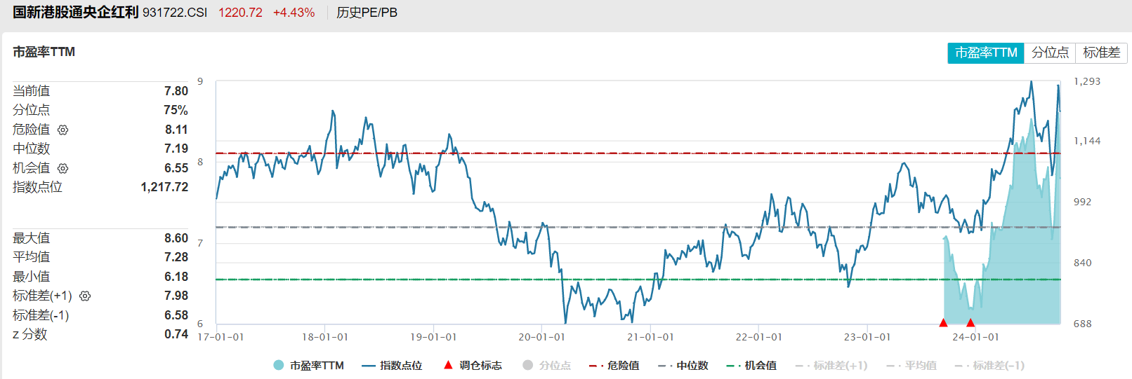 最后从目前的估值水平来看,Wind数据显示,中证国新港股通央企红利指数的市盈率水平已经来到了历史75%的分位;恒生港股通中国央企红利指数的市盈率水平也来到了历史84%的分位。
