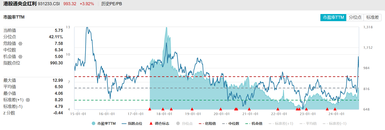 相较而言,中证港股通央企红利指数的市盈率水平还在历史45%的分位以下,在这三个指数中,算是估值相对较低。