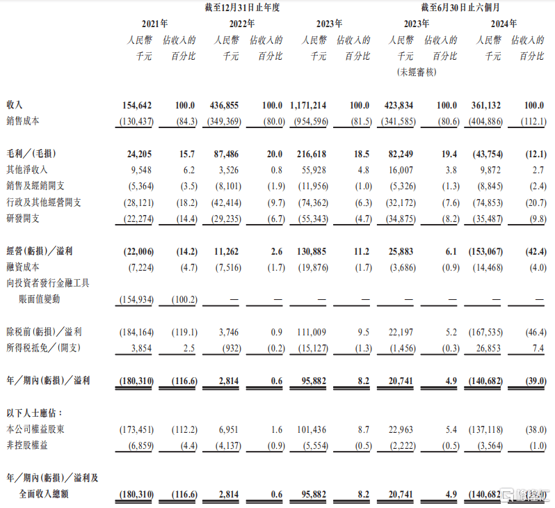 不过,2024年受多重因素影响,公司的收入同比下降14.8%至3.61亿元,并录得净亏损1.41亿元,整体毛利率为-12.1%。