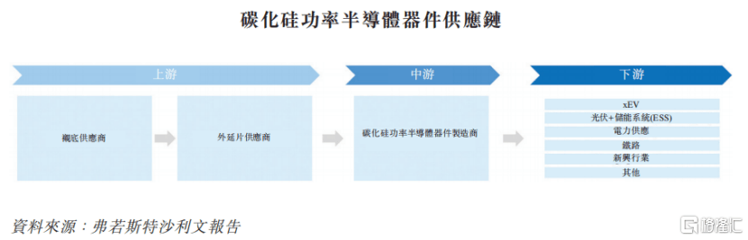 下游分部则包括将最终产品及系统分销至各种应用领域,如xEV及电力供应。由于转换成本较高,通常碳化硅功率器件制造商不会轻易更换其碳化硅外延片供应商。