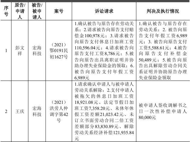 与此同时,发行人在报告期内存在多起劳动仲裁案件,具体情况如下: