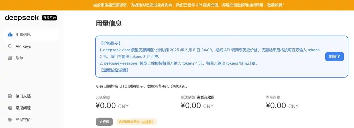 此前,DeepSeek已暂停API服务充值入口,官方解释系"当前服务器资源紧张,为避免对用户业务造成影响"的临时举措。公开资料显示,该企业旗下deepseek-chat模型现处推广期,定价维持每百万token输入2元、输出8元的优惠费率至2025年2月8日,此后将恢复标准费率。而新推出的deepseek-reasoner模型直接采用市场化定价策略,输入输出费率分别为每百万token 4元和16元,较基础模型溢价100%。