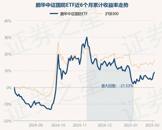 证券之星消息,2月7日,鹏华中证国防ETF最新单位净值为0.6831元,累计净值为1.3662元,较前一交易日上涨0.68%。历史数据显示该基金近1个月上涨5.09%,近3个月下跌11.87%,近6个月上涨8.98%,近1年上涨21.55%。该基金近6个月的累计收益率走势如下图: