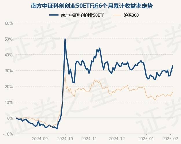 证券之星消息,2月7日,南方中证科创创业50ETF最新单位净值为0.5766元,累计净值为0.5766元,较前一交易日上涨1.78%。历史数据显示该基金近1个月上涨4.53%,近3个月下跌4.3%,近6个月上涨32.83%,近1年上涨29.92%。该基金近6个月的累计收益率走势如下图: