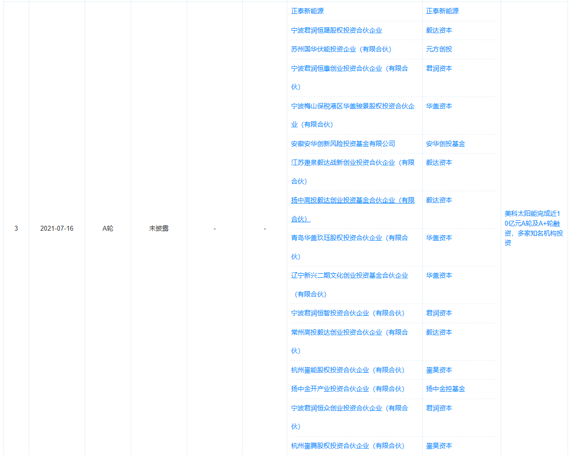 此次,A轮融资的资金归还了关联方欠款及清偿了银行债务以及用于了单晶扩产计划。而此次入局的股东有17家,环太开发将美科股份5,114.7789万元注册资本以7.4686元/注册资本的价格转让予17位新外部股东,包括毅达资本、正泰新能源、华盖资本、君润资本、鋆昊资本、安华创投、元方创投和扬中金控等多家知名机构投资。