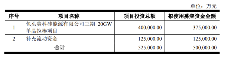 此次美科股份IPO拟募资50亿元,其中37.5亿元将继续用于扩产单晶产品,剩余12.5亿元将用于补充流动资金。