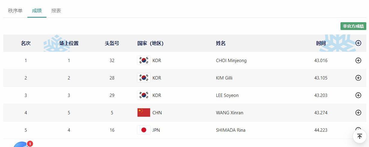 中新网哈尔滨2月8日电(国璇 周昕)8日,哈尔滨亚冬会短道速滑女子500米决赛在黑龙江省冰上训练中心综合馆举行。韩国选手崔敏静以43秒016的成绩夺冠,并创造新的赛会纪录。其队友金吉莉、李素妍分别摘得银牌和铜牌。唯一晋级到A组决赛的中国选手王欣然排名第四位,无缘领奖台。