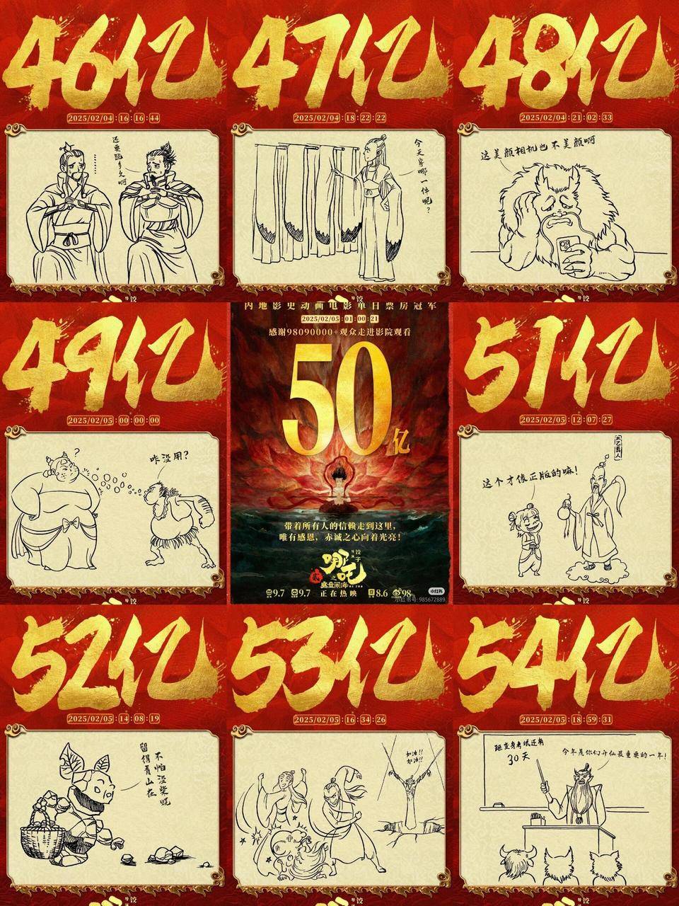 而现在破 70 亿的消息一传出,网友们更是瞬间炸开了锅,各大社交平台上全是相关的讨论。其中,“# 饺子导演的 70亿海报 #还没出” 这个话题更是迅速蹿红,成为大家热议的焦点。熟悉饺子导演的朋友都知道,之前电影票房每达到一个关键节点,他都会亲手绘制一张极具创意和纪念意义的海报,这些海报不仅设计精美,还暗藏着许多电影里的小彩蛋,所以深受影迷们的喜爱和期待。