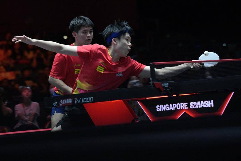 男双决赛,3号种子林诗栋/王楚钦11-2、11-4、13-11力克中国台北组合林昀儒/高承睿,配对首站就拿下冠军。
