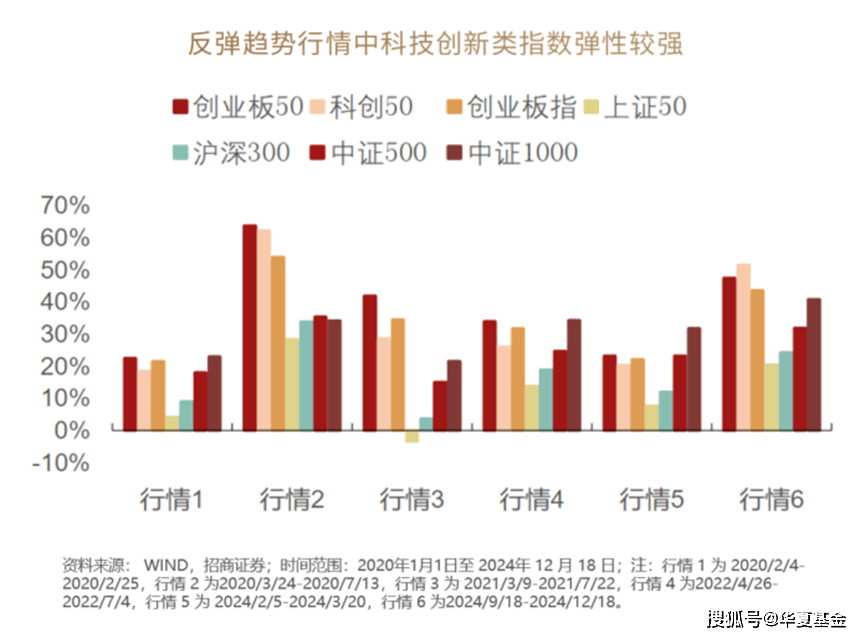 如果简单从历次市场反弹的表现来看,2020 年以来,在6次较为显著且持续的上涨行情中,以科创板为核心的科技创新主线始终是主要阵地,在估值扩张期表现占优。