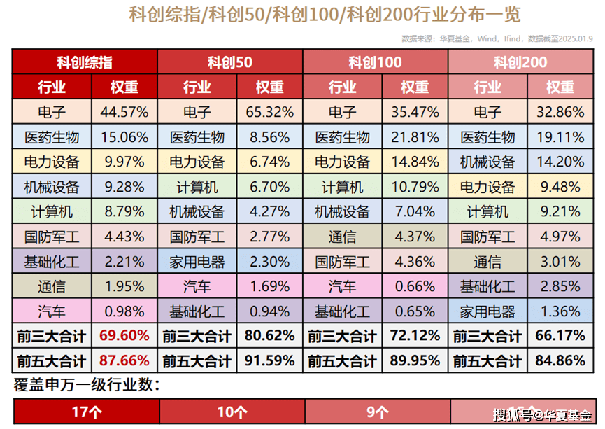 不同于科创50对大市值龙头的聚焦、科创100突出的中盘特质,以及科创200对小微盘科技新星的关注,科创综指汇集了此前的“局部战役图”,打造了一幅科创板的“全息沙盘”:
