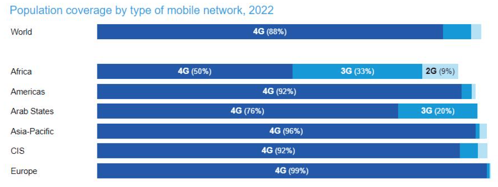 移动网络(4G/5G)以及互联网是支撑数字经济的重要基础设施,当前,非洲的 4G 网络覆盖率仅 50%,远低于世界平均水平,甚至有些地方只有 2G 网络,除了南非等经济相对发达的国家互联网普及率较高,整个非洲的互联网普及率只有 30% 左右,某种程度上限制了数字经济以及稳定币经济生态的发展。