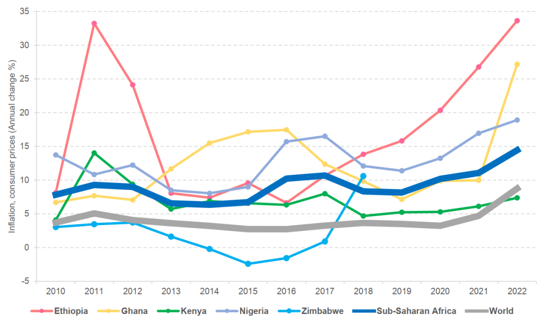 除了数字经济快速发展的推动以外,当前非洲经济发展存在如高通胀率、货币波动性、银行服务覆盖率低以及金融基础设施薄弱等问题,而稳定币提供了一种相对稳定的交易媒介,帮助非洲民众和企业应对这些经济挑战。