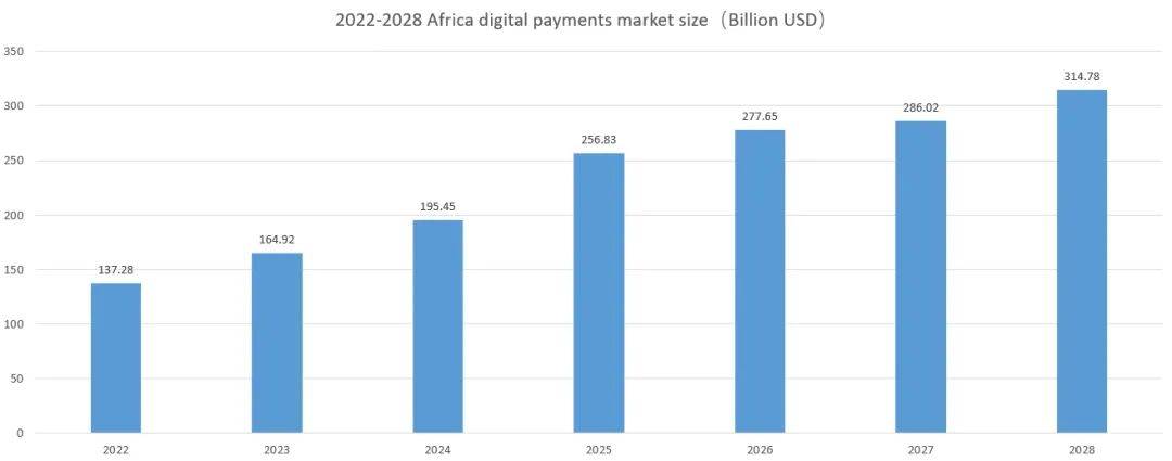 当前非洲的移动网络用户达到 12.2 亿,其中智能机用户 6.76 亿,占比为 55.32%,主要的移动支付平台包括 M-PESA、Airtel Money、Orange Money、MTN Mobile Money 等,这些平台在非洲广受欢迎,提供了便捷的金融服务,解决了无银行人群的困难。预计到 2028 年,非洲数字支付市场的价值将进一步增长至 3148 亿美元。