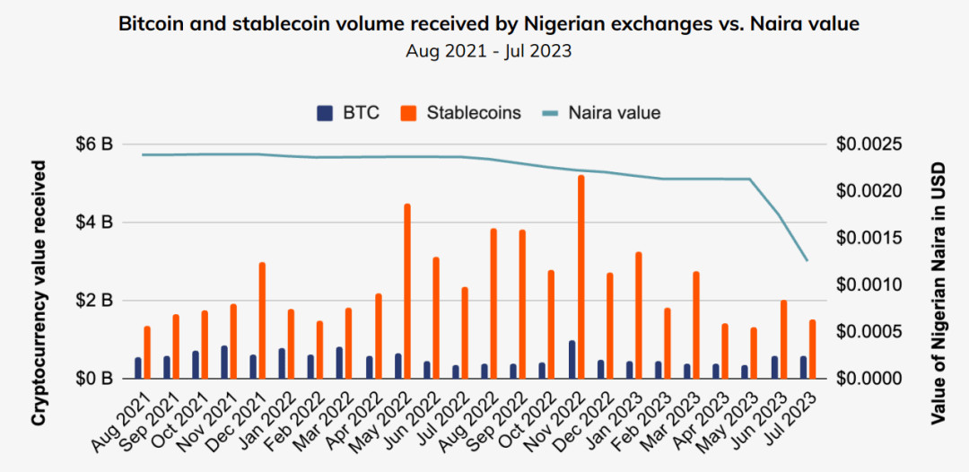 以非洲最大的加密经济体国家尼日利亚为例, 2022 年,尼日利亚中央银行宣布打算重新设计法定货币(NAIRA)并发行新纸币以打击通货膨胀,对货币流通量进行更多控制。不幸的是,由此造成的现金短缺给该国没有银行账户的人口带来了巨大压力,2023 年初。尼日利亚不确定的经济环境鼓励更多公民寻求财务替代方案,即增加加密货币持有量(主要为稳定币)。