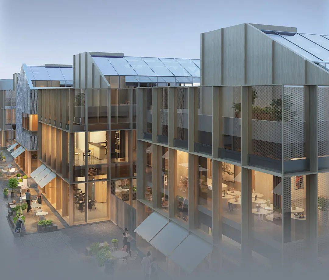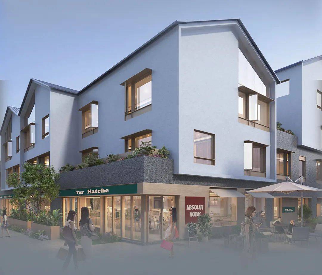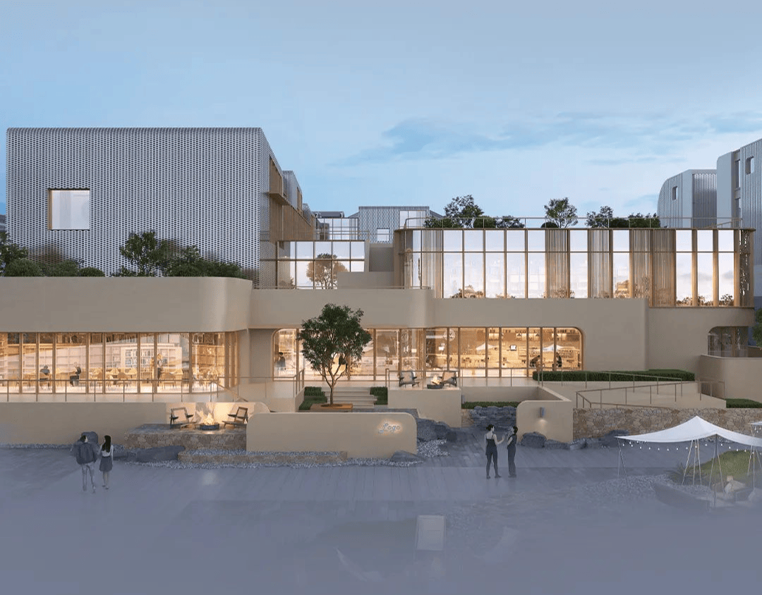 作为一个元素丰富、场景多元、充满人文感的度假社区,建筑面积10万平方米,由北至南,贯穿整个湾里小镇,形态顺应城市肌理,营造“北高南低”的空间形态。