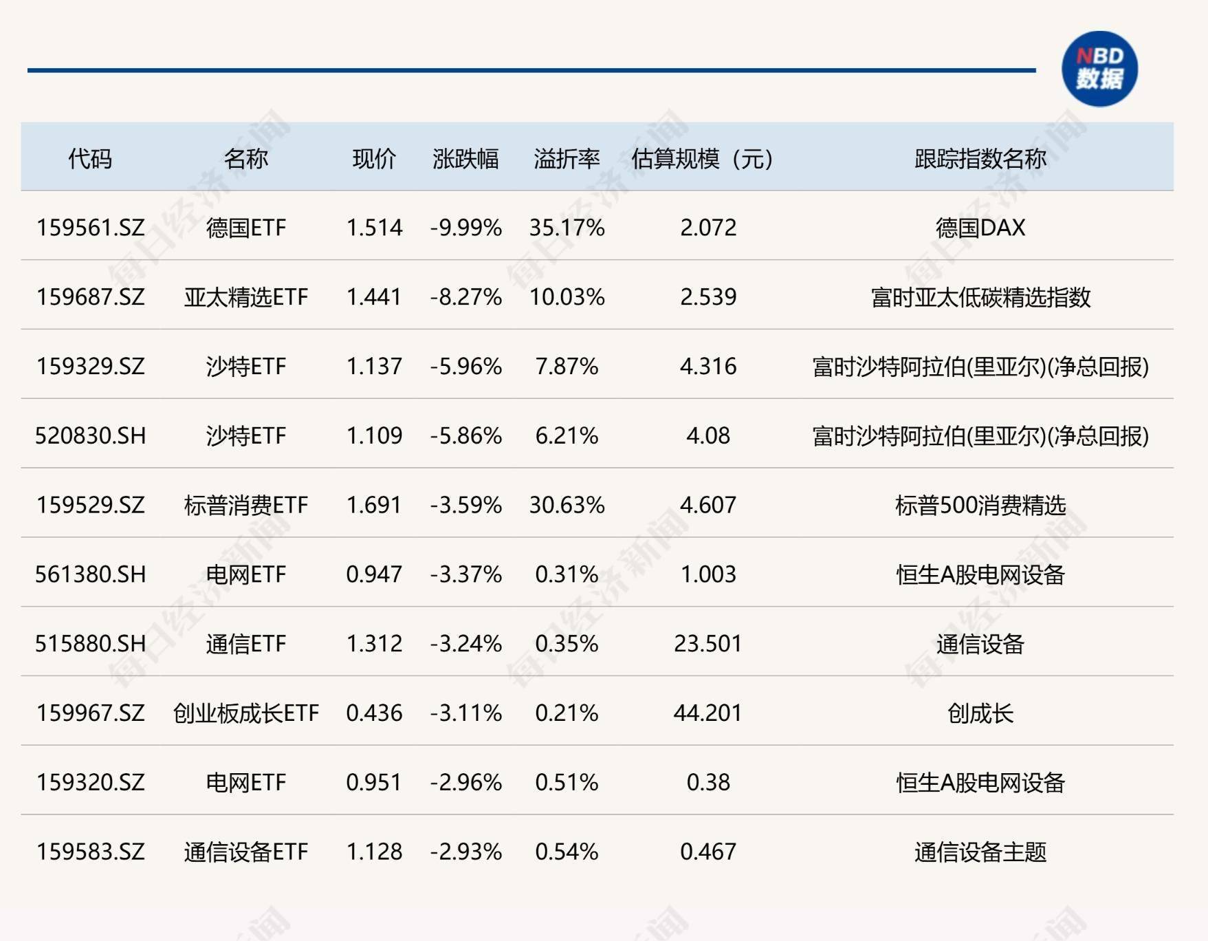 下跌方面,德国ETF跌停,溢价仍超35%。