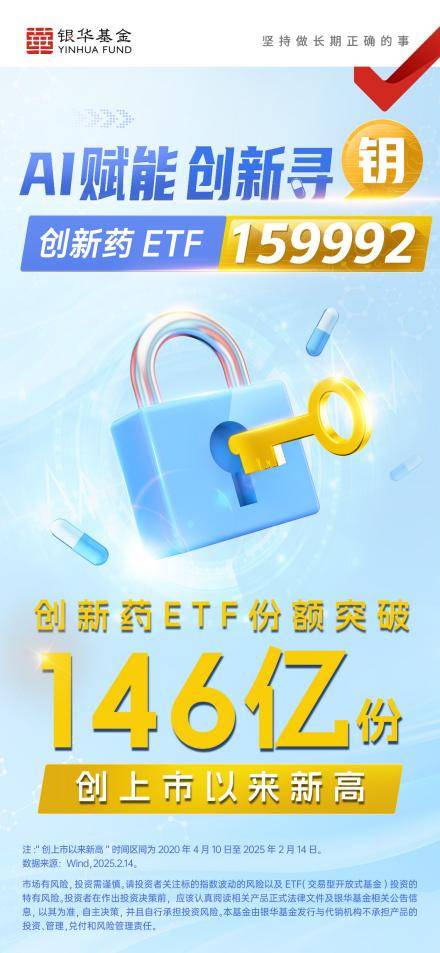 据Wind数据显示,截至2025年2月14日,创新药ETF(159992)份额达到146.17亿份,创上市以来新高,彰显出主力资金对该基金的青睐与认可。(数据来源:Wind,截至2025.02.14)