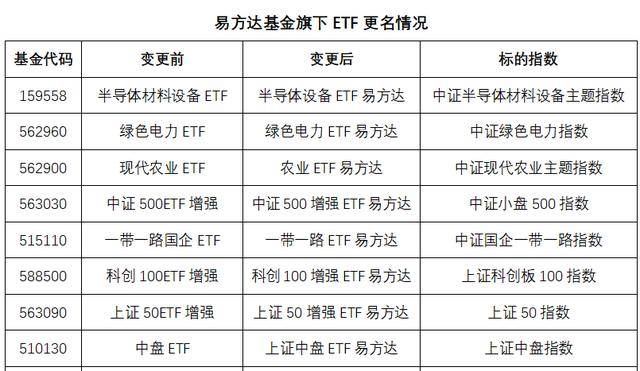 变更后的简称更加清晰简洁,不易混淆。例如,跟踪上证中盘指数的“中盘ETF”变更为“上证中盘ETF易方达”,更贴近标的指数,投资者能从名称中清晰得知这只ETF反映的是沪市中盘股票表现,避免误以为是全市场的中盘股票;还有像跟踪中证国企一带一路指数的“一带一路国企ETF”,也简化为“一带一路ETF易方达”等等,简称变更后更加简洁,也符合投资者的固定用词习惯,便于记忆与搜索。