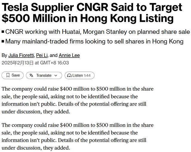 同时,彭博社报道,中伟新材料正与摩根士丹利、华泰证券磋商IPO事宜,拟集资4至5亿美元。