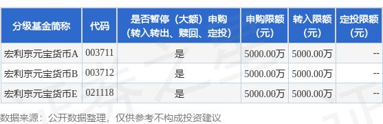 证券之星消息,2月18日宏利基金管理有限公司发布《宏利京元宝货币市场基金调整大额申购、大额转换转入、大额定期定额投资业务的公告》。公告中提示,为保证本基金的稳定运作,保护基金份额持有人利益,自2025年2月18日起宏利京元宝货币市场基金调整大额申购、大额转换转入、大额定期定额投资业务,申购、转换转入上限金额为5000.0万元,下属分级基金调整明细如下: