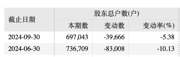 截至2024年9月末,三一重工A股股东总户数为69.7万户。