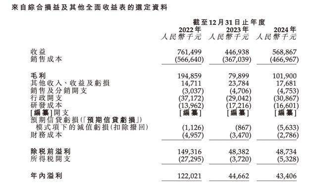 据招股书,2022年-2024年,新琪安实现收益分别为7.61亿元、4.47亿元、5.69亿元;年内溢利分别为1.22亿元、4466.2万元、4340.6万元。可见,2024年其增收不增利。