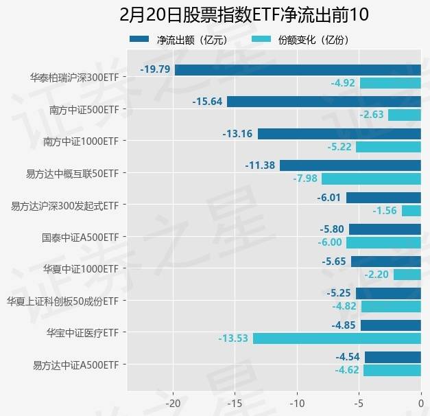 当日有416只股票指数ETF基金出现资金净流出,其中净流出排首位的是华泰柏瑞沪深300ETF(510300),份额减少了4.92亿份,净流出额为19.79亿元。