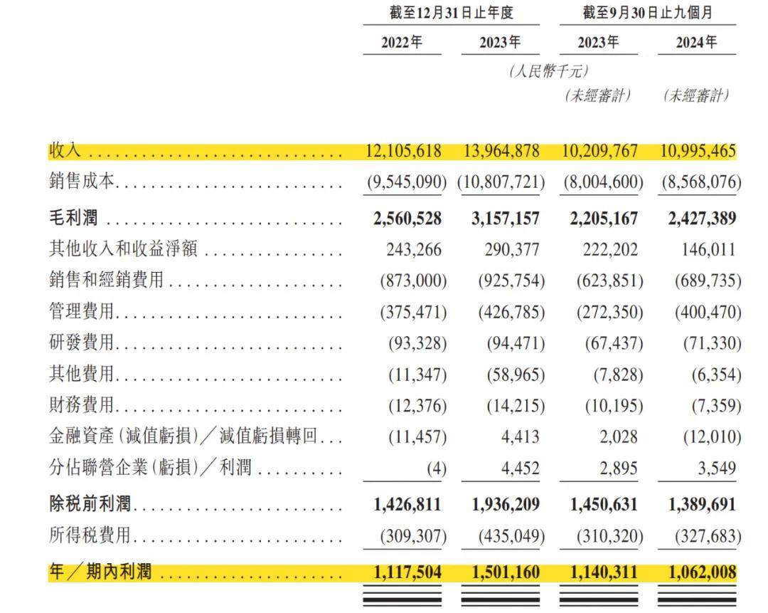 据弗若斯特沙利文,按2023年收入计,安井是中国最大的速冻食品公司,市场份额为6.2%。另据招股书,安井在2022年、2023年、2024年前三季度的营收为121亿元、140亿元、110亿元,净利润为11亿元、15亿元、10亿元。