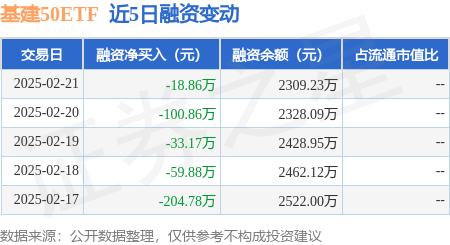 证券之星消息,2月21日,基建50ETF(516970)融资买入303.0万元,融资偿还321.85万元,融资净卖出18.86万元,融资余额2309.23万元。