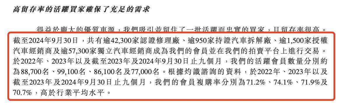 值得一提的是,截至2024年9月30日,共有逾42,300家认证修理厂、逾950家持证汽车拆解厂、逾1,500家授权汽车经销商及逾57,300家独立汽车经销商成为公司的会员并在拍卖平台上进行交易。