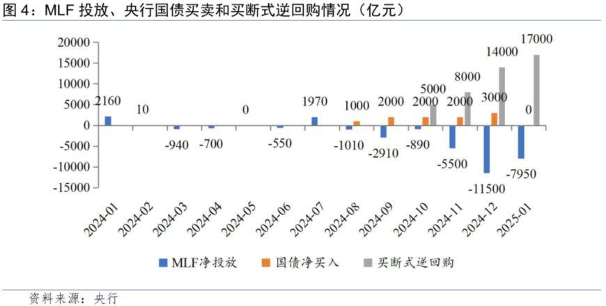 自潘功胜行长在2024年6月陆家嘴论坛上提出货币政策框架演进的思路以来,央行陆续优化和调整货币政策工具箱,切实推进公开市场操作体系的进一步完善。为此,四季度货政报告设置专栏1《进一步完善央行公开市场操作体系》,详细阐述了2024年以来完善公开市场操作体系的历程,包括调整7天逆回购招标方式并将其确立为主要政策利率、设立临时正逆回购工具和买断式逆回购操作工具、开展公开市场国债买卖、延后MLF操作时间并调整中标机制,以及创设证券、基金、保险公司互换便利和在香港发行央行票据等,并释放出新体系的三大功能:推动向价格型调控转型、丰富基础货币投放渠道、维护金融市场平稳。
