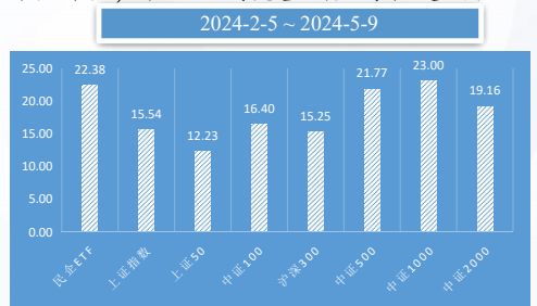 本市场从2021年以来经历长达3年的下跌,到2024年2月初探底后上升。民企ETF在自2024年2月初起的本轮反弹行情中的表现超过了所有主要宽基指数。